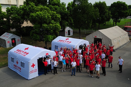 争分夺秒的医院搭建随即展开!在本次演练中,华山医院将国家卫计委紧急医学救援队(移动医院)与红十字国家医学救援队的全套装备悉数搬出,曾屹立在都江堰3个多月的中德红十字野战医院的50平米大帐篷也在6年后再度“现身”。傍晚6:00,一盏月球灯在营地内被点亮,寓意着为“灾区”带来光明和温暖,而队员们也使用随队携带的物资开始准备在“灾区”的第一顿晚餐——来自五湖四海、不同机构的队员们包起热腾腾的饺子,融通红十字队员的融融温情。