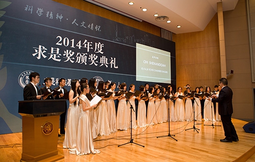 2014年度“求是杰出科学家奖”被授予清华大学物理系薛其坤教授。2014年度“求是杰出青年学者奖”被颁发给董斌、熊宇杰、张川、赵俊、李健、吴晨、颉伟、陆朝阳、宋吉舟、杨越十位优秀的海归青年学者。