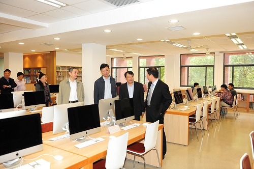 在复旦附中,朱之文一行在附中校长郑方贤、党委书记吴坚等人陪同下,参观了生物标本室、校史陈列室、教学楼、图书馆。随后,朱之文等听取了附中校长郑方贤、附中副校长兼二附中校长杨士军、附小校长黄琪、总务处副处长王丽红的工作汇报。