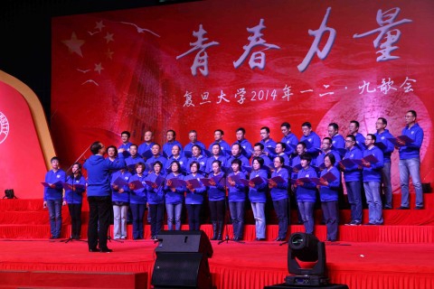 2014年12月9日,青春力量——2014年复旦大学“一二•九”主题歌会决赛在正大体育馆圆满落下了帷幕。复旦大学校长许宁生老师,校党委副书记尹冬梅老师,以及学校各机关部处的有关领导老师出席了晚会。经过3个小时的激烈角逐,最终新闻学院斩获桂冠,连续第二年获得“一二•九”歌会金奖。
