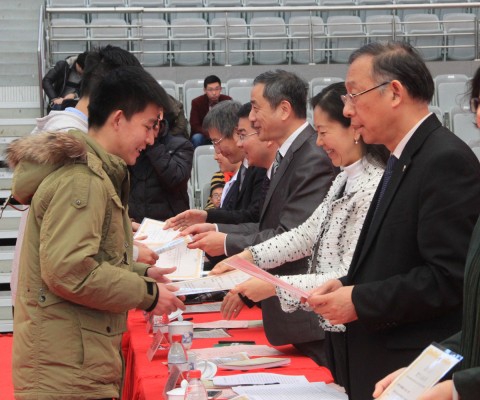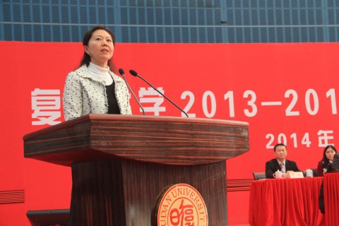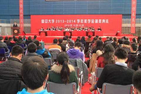 2014年12月23日下午,复旦大学2013-2014学年奖学金颁奖典礼在正大体育馆隆重举行。常务副校长陈晓漫在典礼前和获奖学生以及设奖单位嘉宾座谈,向获奖同学表示祝贺,同时感谢社会各界对于复旦的支持和厚爱。校党委副书记、校奖(助)学金评审委员会主任尹冬梅,副校长冯晓源,副校长陆昉等校领导,校奖(助)学金评审委员会成员、冠名奖学金设奖单位嘉宾和学校各院系、各部处领导,以及获奖学生代表和部分一年级学生3000余人齐聚一堂,共同见证了这一隆重的时刻。