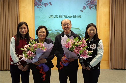 在俭朴的颁奖仪式现场,学生代表向闻玉梅院士、宁寿葆教授献上鲜花,以表达大家对这两位医学前辈身体力行上医优良传统、无私忘我支持健康事业的崇高敬意。