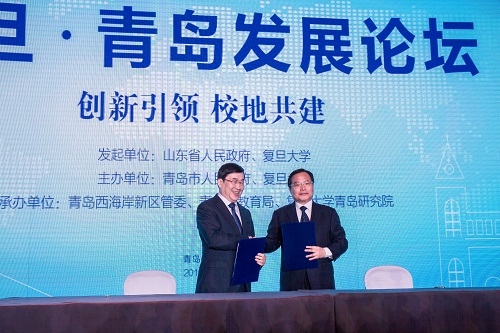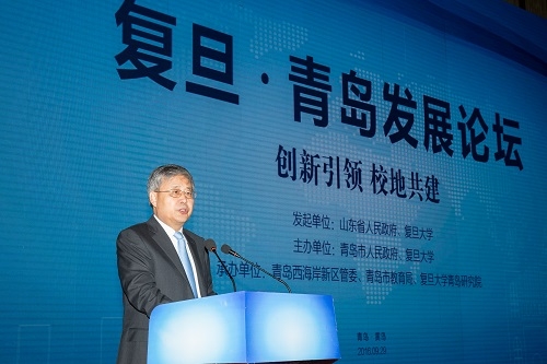 新闻中心讯 为了贯彻落实山东省人民政府和复旦大学签署的战略合作协议,率先实施山东省《关于深化科技体制改革加快创新发展的实施意见》,快速响应青岛市《关于深入推进科技创新发展的意见》,扎实推进复旦大学服务国家战略,9月29日,以“校地共建 创新引领”为主题的“2016(首届)复旦•青岛发展论坛暨复旦大学创新成果博览会”(以下简称“论坛”)在青岛西海岸新区举行。同日,复旦大学青岛研究院正式揭牌。