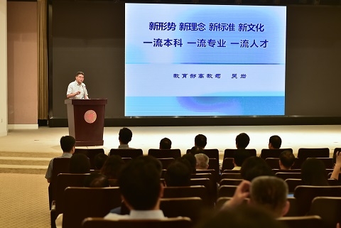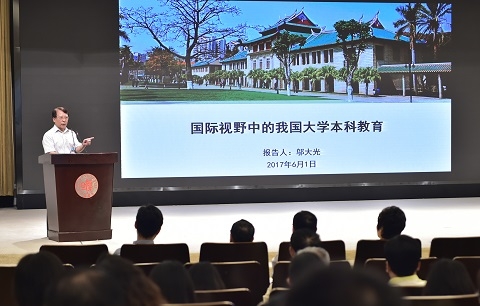 吴岩在题为《新形势、新理念、新标准、新文化,一流本科、一流专业、一流人才》的专题报告中指出,中国正处于高等教育大国向高等教育强国转型的发展拐点,建设高等教育强国必须以一流大学为目标,以一流学科为条件,以一流本科为根本,以一流人才为基础。“双一流”建设的核心是一流人才,一流人才的核心是一流本科和一流专业,建设世界一流大学的关键是质量。他强调,只有研判新形势,才能知道学校在哪里,只有树立新理念、掌握新标准、建立新文化,才能保证学校走得对、走得远、走得长。他还就我国高等教育质量保障新制度、教育部高教司“六卓越一拔尖计划”等作了介绍。邬大光结合自己近两年参加985高校本科教学工作审核评估工作的实际,作了题为《国际视野中的我国大学本科教育》的专题报告。