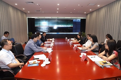 会谈前,焦扬在中国日报社秘书长朱宝霞的陪同下参观了中国日报社全媒体中央厨房,并就融媒体建设、如何更好提升国际传播力开展交流。