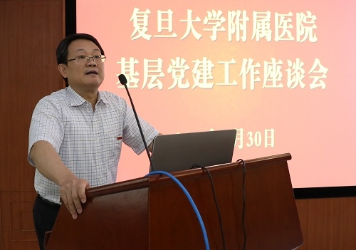 在迎来建党96周年之际,6月30日下午,复旦大学附属医院基层党建工作座谈会在华东医院召开。校党委书记焦扬出席会议并讲话,常务副校长、上海医学院院长、党工委书记桂永浩主持会议。上海医学院党工委、学校相关职能部处负责人、各附属医院党委负责人等40余人参加会议。