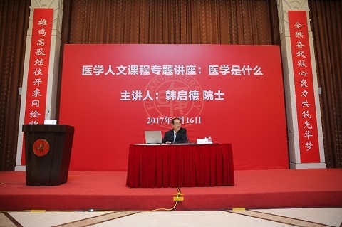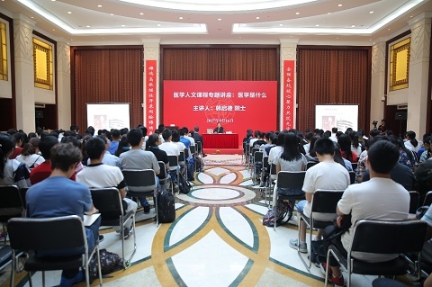 在讲座最后韩院士讲到,人们对现代医学的不满,不是因为她的衰落,而是因为她的昌盛;不是因为她没有作为,而是因为她不知何时为止。人们因为成就生出了傲慢和偏见,因无知而变得无畏,因恐惧而变得贪婪。常常忘记医学从哪里来,是如何走到今天的,缺乏对医学的目的和要到哪里去的思考。医学是什么,这看似触发永恒的哲学追问,其实就是“医学人文”需要解释的问题。韩院士勉励在座各位医学生不忘医学的初心,不管医学技术如何变革,相信医学始终是人类情感和人性的表达。