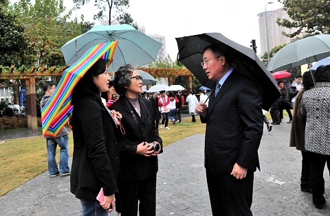 仪式期间巧遇上海久违的秋雨。这一场“及时雨”让校园显得更加郁郁葱葱、清新怡人。再过两天,上医海内外校友将“回家”团聚,与师生们共同参与上医创建90周年系列活动。四个标志性文化景观将是大家回忆上医、感恩上医、畅想上医的“团圆处”,也会让大家为上医的新变化、新希望感到欣慰和自豪。