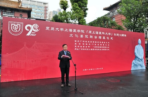 新闻中心讯 作为复旦大学上海医学院创建90周年系列活动中具有历史和文化传承意义的一项活动,上海医学院“文化景观联合揭幕仪式”于11月16日举行,其包括“福庆广场落成暨颜福庆像揭幕仪式”“医学院路校门落成揭幕仪式”“医学生誓言碑·一级教授雕像揭幕仪式”和“同生广场落成暨上海医学院院名石揭幕仪式”。