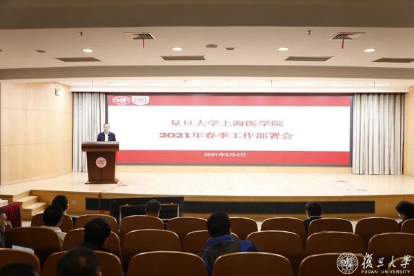 3月4日,复旦大学上海医学院召开2021年春季工作部署会。复旦大学党委副书记、上海医学院党委书记袁正宏,复旦大学常务副校长、上海医学院党委副书记、院长金力部署医学院年度党政重点工作,对做好全年工作提出要求。上海医学院领导杨伟国、张艳萍、徐军、吴凡、汪志明就分管领域重点工作作布置。