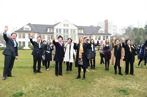 巴西驻沪总领事安娜·佩雷斯、奥地利驻沪总领事施丽伟、新西兰驻沪总领事葛甘楠、马耳他驻沪总领事梁赛、委内瑞拉驻沪总领事莱斯贝斯·莱昂、厄瓜多尔驻沪总领事卡林纳、古巴驻沪总领事李兹培、瑞典驻沪总领事林莉等八位驻沪女总领事,在当天上午参观了复旦校园。从复旦大学北欧中心出发,女总领事们先后来到苏步青铜像、子彬院(复旦高等学术研究院、大数据学院、大数据研究院)、理科图书馆、毛泽东像、曦园、复旦书院、光华楼及国际智库大楼等重要地标,了解复旦悠久的历史和丰富的校园文化,聆听了复旦书院及智库建设等最新情况。