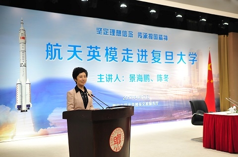 据介绍,“航天英模走进复旦大学”是“时代英模进校园”系列活动的第二场,通过宣传英雄模范人物的先进事迹和崇高精神,诠释时代责任,激励成才报国。希望用榜样的力量,感染人、鼓舞人、带动人,为同学们的学习成长、为学校各项事业发展,注入强大的精神动力。