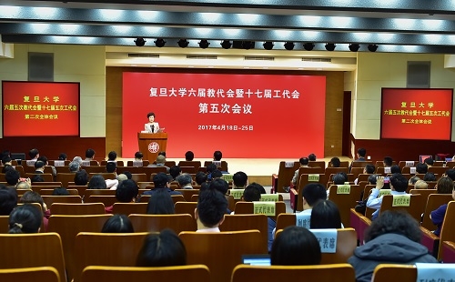 新闻中心讯 4月25日,复旦大学六届五次教代会暨十七届五次工代会在光华楼圆满闭幕。校党委书记焦扬、校长许宁生等校领导出席会议。大会由校党委副书记、纪委书记、工会主席袁正宏主持。全校各部门、各单位正式代表、特邀代表和列席代表300余人参加了大会。大会在枫林校区设立了分会场。