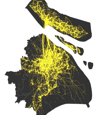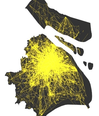 中图:2016年6月上海市第一类就业人口高频位置轨迹图