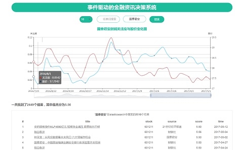 为帮助用户了解和分析实时的金融资讯以便进行更科学的投资,复旦-中植金融大数据研究院,设计了事件驱动金融资讯系统。该系统采用大数据智能分析的方法,对海量金融资讯进行深度理解分析,并从金融时间的角度切入,为用户的查询提供实时的投资建议。