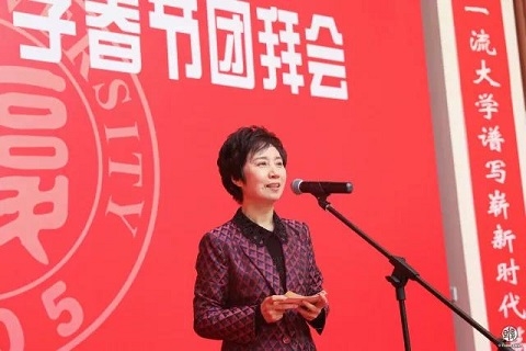 校党委书记焦扬在讲话中向各位老领导、老教授、老同志,向全校师生员工和广大海内外校友,致以新春的问候和节日的祝福。她说,刚刚过去的2017年是我们认真学习贯彻党的十九大和全国高校思想政治工作会议精神,加快“双一流”建设步伐的奋进之年,在全校师生员工的共同努力下,学校各项工作取得了新成绩、新亮点、新突破,党建和思想政治工作迈上新台阶,各项事业蹄疾步稳、成果丰硕,综合实力不断提升,学校发展站上了历史的新起点。