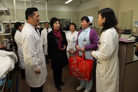 当天,许征赴附属金山医院、附属公共卫生临床中心慰问,袁正宏赴附属儿科医院、附属市五人民医院慰问,刘承功赴附属妇产科医院、附属浦东医院慰问,分别带去了学校对附属医院医务人员的问候,祝愿大家过个温暖、愉快的新春佳节。上述附属医院党政负责人和学校有关职能部处负责人陪同慰问。