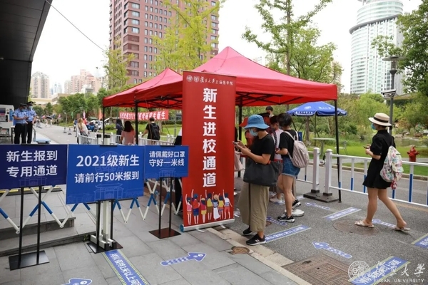 根据疫情防控有关要求,学校制定了一系列防疫工作方案和应急处置预案,检查14天健康报告和核酸检测阴性证明,并合理设计各校门、校区接待点新生出入口,及时现场疏导,避免人员聚集。