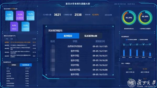 本次迎新工作努力简化报到流程,尽可能减少人员接触。学工部、医学学工部、保卫处与信息办联合,整合资源扩展服务,做到“两点一线”“主动出击”,将迎新工作关口前移,实现信息提前发布,部分手续提前网上办理,师生联系提前建立,极大地提高工作效率,提升精细化管理水平。学生通过迎新系统查询宿舍安排和各园区专用新生入口位置,对报到路线做到心中有数;通过微信“复旦eCard”和“复旦eHall”小程序提前领取虚拟校园卡,并线上确认返校信息,预先完成进校报到第一步,提升报到效率。当日,学生完成体温检测后,即可凭借虚拟校园卡轻松“扫码入校”,跟随志愿者实现入园点和宿舍楼“两点一线”之间的转移。