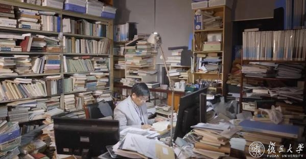 在陈尚君的家和办公室里,围放着比小山还高的书籍。陈尚君在浩如烟海的藏书中,日复一日潜心于唐代文献辑佚、文史考据的研究工作。