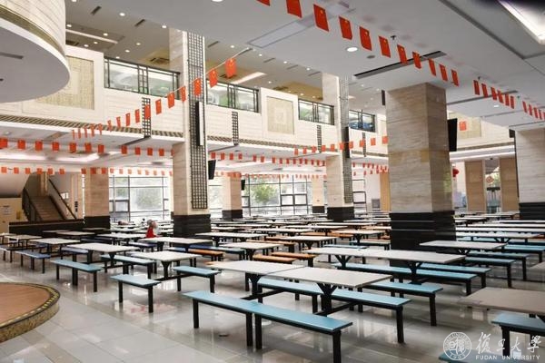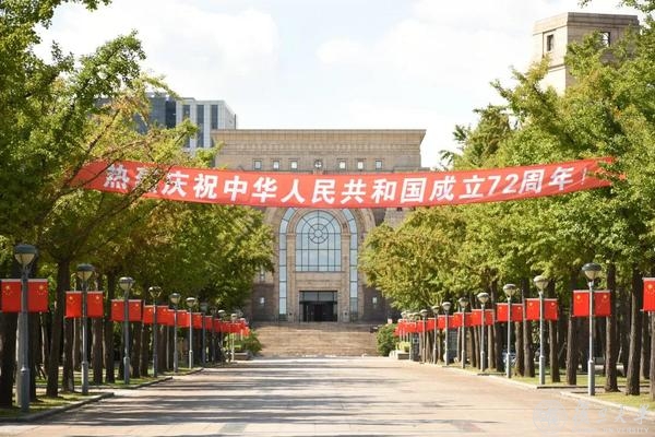 满园红裳,复旦庆祝中华人民共和国72华诞。道路旁,旗杆顶,路灯下,五星红旗布满学校的各个角落。悬起灯笼,摆上立牌,食堂内外,到处洋溢欢度国庆的气息。