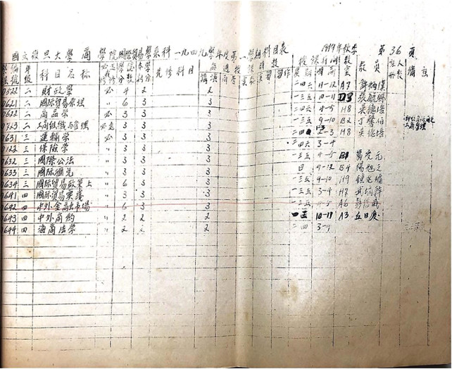 《国立复旦大学商学院国际贸易学系1949学年度第一学期科目表》