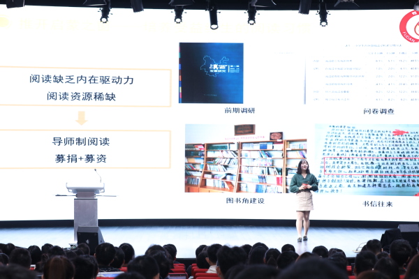 马克思主义学院2018级硕士生张玥琪代表烛心社以“支教点亮未来”分享了社团暑期阅读夏令营的开展情况。作为以研究生为主体的志愿公益类社团,烛心社连续五年在云南山区开展支教活动,以阅读夏令营的方式帮助学生培养起受益终身的阅读习惯,并通过“梦想辅导员”计划,对学生的成长进行长期陪伴、长线跟踪,致力于探索出能够实际解决短期支教局限性和山区留守儿童问题的有效方案,期待通过支教真正实现扶志的最终意义。“支教是一个用知识和技能的传续报答祖国的培养的过程,我们希望能将自己所学转化为实践行动来报答社会。”张玥琪说。