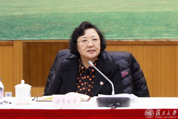 诸葛彩华代表中央指导组对复旦大学领导班子提出四点要求。一是持续深入学习贯彻习近平新时代中国特色社会主义思想,将其作为重大政治责任、长期政治任务,在全面系统学、深入思考学、联系实际学上下功夫,特别要深刻领会习近平总书记关于教育的重要论述,增强办好中国特色社会主义高校的政治自觉、思想自觉和行动自觉。二是把“不忘初心、牢记使命”作为终身课题,把初心使命转化为锐意进取、开拓创新的精气神和脚踏实地、真抓实干的自觉行动,为全校党员干部作示范、当表率。三是以自我革命精神加强校领导班子建设,坚持党对高校的全面领导,加强领导班子政治建设,全面贯彻党的教育方针,落实立德树人根本任务,培养更多德智体美劳全面发展的社会主义建设者和接班人。四是扎实做好整改落实,特别是专项整治工作,把抓好专题民主生活会后的问题整改和建章立制,作为巩固提高主题教育成效的重要工作。她希望复旦大学发扬善始善终、善作善成的精神,持续用力,一抓到底,圆满完成第二批主题教育各项任务,继续巩固和扩大主题教育成果,努力建设“第一个复旦”,为全面建成中国特色世界一流大学创造新业绩、作出新贡献。