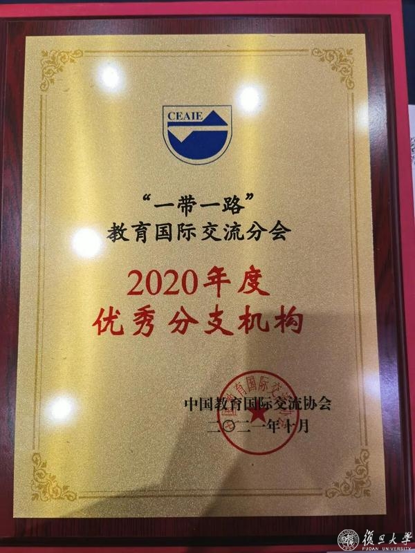 复旦获奖:“一带一路”教育国际交流分会获“2020年度优秀分支机构”称号