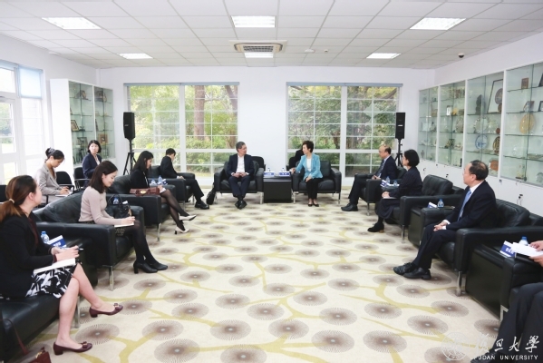 新加坡驻沪总领事蔡簦合、复旦大学副校长陈志敏出席会见。会见结束后,新加坡大使一行与复旦学者进行了座谈交流。