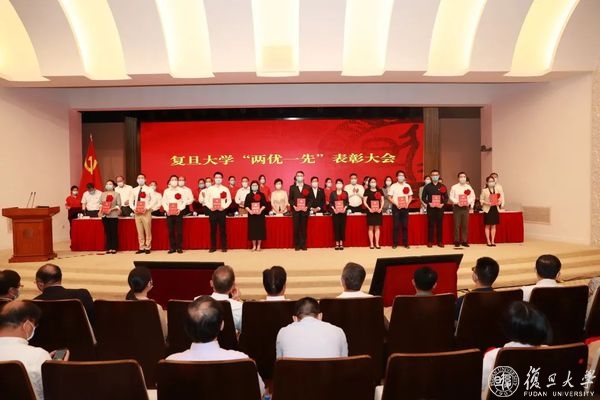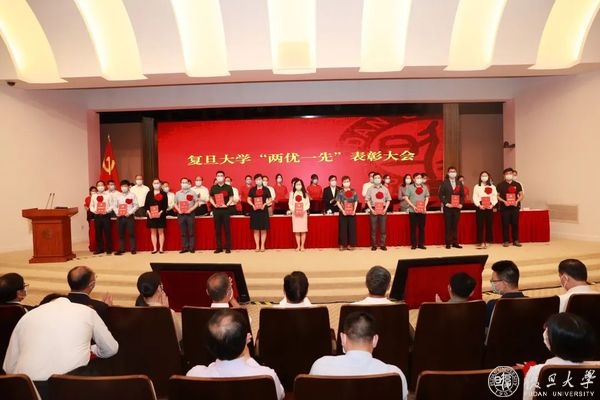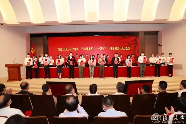 庆祝中国共产党成立100周年之际,6月24日上午,复旦大学优秀共产党员、优秀党务工作者、先进基层党组织(“两优一先”)表彰大会隆重举行,旨在回顾党的奋斗历程,表彰先进集体和个人,大力弘扬先进事迹和崇高精神,激励全校党员传承红色基因,接续百年奋斗,在全校营造学习先进、崇尚先进、争当先进的良好氛围。