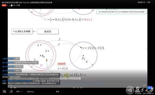 “你在蓝颜色的球里面随便定个y,在红颜色的球里寻找x,使得f(x)=y。”3月13日上午8:25,在“数学分析BII”课程钉钉群中,航空航天系教授谢锡麟老师开始了当天的第二场分屏直播。红球在左,蓝球在右,隐映照定理的内容通过图示直观地展现出来,这是谢老师专门为线上课程做的基于“知识图示化”的阐述。