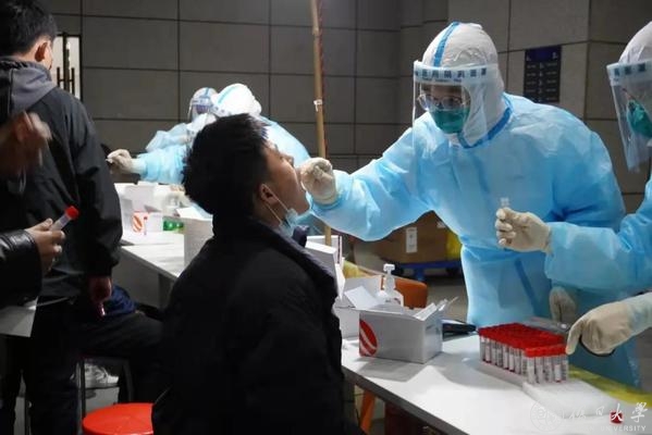 井然有序——室外核酸检测点已经排起长队、秩序妥当。在场每一位师生,充分表示理解、支持、配合,耐心接受指引,安静停留等待,用行动配合防疫,用团结传递友爱。这,是江湾最美的景象。