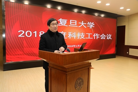 2019年1月3日,复旦大学2018年度科技工作会议在光华楼召开。校长许宁生出席会议并讲话。副校长金力、周亚明、张人禾分别作工作报告。会议由常务副校长桂永浩主持。