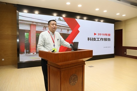 会上,金力从2018年科技工作新突破、学校科技工作短板以及2019年科技工作重点三部分全面介绍了学校科技工作情况,重点分析了学校科技发展的短板,并提出要在培育重大原创研究项目、结合上海科创中心建设推进国家级科研平台培育和新建、提升服务国家战略和地方的能力、争取更多标志性成果和奖项等方面持续发力。张人禾、周亚明分别围绕国家自然科学基金和军民融合科技、学校人才政策等主题进行了详细分析和介绍。科研院专门就院系投入产出情况进行了分析。