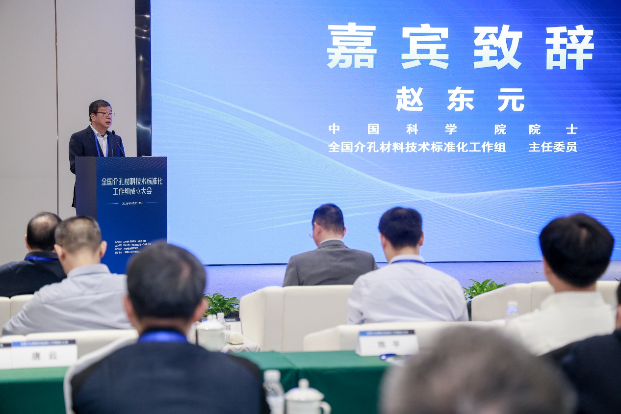 赵东元在致辞中系统阐述了工作组四大核心任务:一是构建覆盖“材料制备 — 性能表征 — 应用评价 — 安全管控” 的全链条标准体系,年内将启动介孔碳、介孔氧化硅测试标准的立项起草;二是组建跨领域产业联盟,吸纳科技攻关人员、国际标准专家、企业代表等专业力量,推动标准从“文本”转化为规范生产的“硬准则”;三是深化国际标准协作,借力11月ISO副主席贾维尔・加西亚访沪契机,深化与国际标准化组织的交流,推动中国标准与国际标准兼容互认;四是紧扣“双碳”目标、绿色制造、健康中国等国家战略,优先制定关键领域核心标准,让标准化工作成为服务国家发展大局的“助推器”。同时,他披露的产业进展引发广泛关注:“团队研发的有序介孔硅碳负极材料已获宁德时代订购,明年将应用于小米、苹果等品牌手机;介孔稀土纳米微球则在电子芯片抛光领域展现出广阔前景,正为破解我国芯片‘卡脖子’问题贡献力量。”针对行业现状,他强调:“当前标准滞后已成为介孔材料产业高质量发展的‘拦路虎’,我们必须以标准定规矩、树标杆,在国际竞争中掌握话语权。”