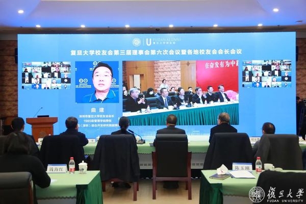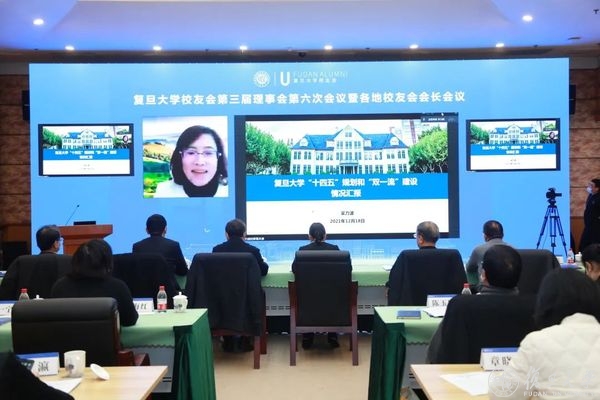 学校发展规划处、校友会秘书处分别作《学校“十四五”规划和“双一流”建设情况介绍》、《复旦大学校友会秘书处年度工作报告》、《复旦大学校友会财务报告》及《复旦大学校友会换届方案》。会议听取校友会报告并一致审议通过。