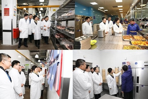 在旦苑食堂,焦扬仔细察看了厨房后厨的工作流程,询问蔬菜、荤菜、大米、调料的保存要求,强调一定要保障师生”舌尖上的安全”。