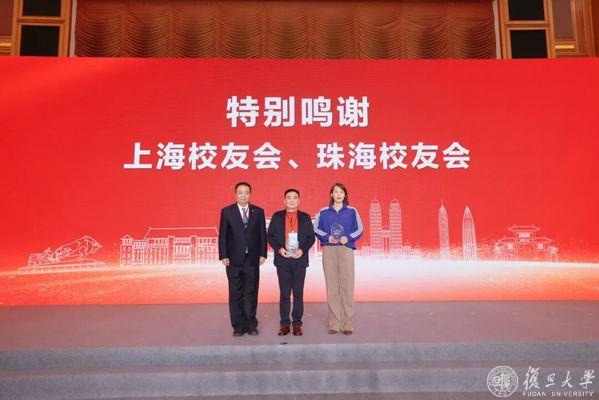 校友总会副会长和母校各院系、部处老师为7批共159个次地方校友组织颁发鸣谢奖杯;并感谢海内外76家校友组织积极联络校友参与校友年度捐赠与“复旦源”公募;金力为珠海校友会和上海校友会颁发特别鸣谢奖杯,特别鸣谢这两个地方校友会为母校百廿华诞所作的重要贡献。