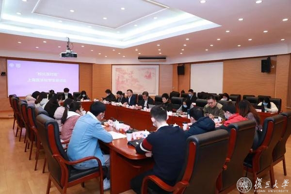 “校长面对面”上海医学院学生座谈会在治道楼和汉堂举行。金力,上海医学院副院长吴凡,上海医学院党委副书记、副院长徐军及医学学工部、医学党政办、医学教务处、医学研究生院等相关部门负责人和上海医学院本科生、研究生代表参加座谈。