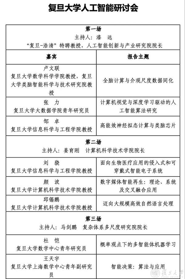 1月7日,复旦大学举行人工智能研讨会,共同探讨人工智能发展方向以及复旦的行动方案、重点举措。复旦大学校长、中国科学院院士金力线上出席并作开幕致辞。中国工程院院士,大数据研究院、大数据试验场研究院院长,复旦大学教授邬江兴作演讲。中国科学院院士、上海数学中心主任、复旦大学教授李骏,中国工程院院士、金融科技研究院院长、复旦大学教授柴洪峰,人工智能领域的专家学者,相关部门负责人出席会议。
