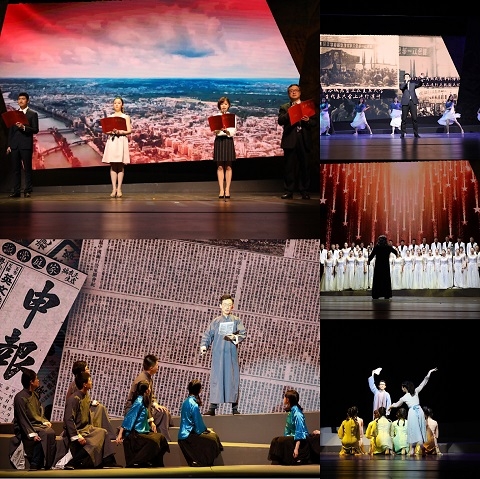 晚会上,青年师生们以朗诵、器乐、声乐、舞蹈、音乐剧等丰富多元的内容和形式再现复旦先贤英烈在风雨如磐岁月中的奋斗历程,抒发当代复旦青年建功立业新时代的壮志豪情。