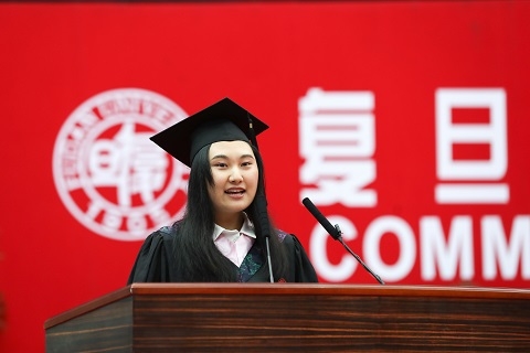 “作为复旦培养的留学生,复旦大学的精神和校风深深的影响了我。‘团结、服务、牺牲’已经成为我生活的追求。”国际文化交流学院2019届汉语言(对外商务汉语方向)专业的俄罗斯学生斯维塔(SVETLANA RZAEVA)作为留学生代表发言。她说,经过在中国的生活,逐渐了解中国人的文化和传统,对中国人百折不挠、自强不息、坚韧不拔的精神十分佩服。她与所有毕业生共勉:“展望未来,我们任重道远!”