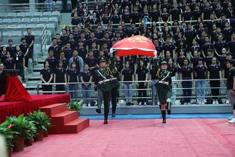 全体新生面向校旗庄严宣誓