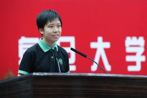 来自志德书院的厉茗同学代表全体2019级新生发言。“热爱是一种指引,但让我做出选择的底气是刻苦努力。热爱,让我们出发;努力,让我们走得更远。”厉茗分享了自己“选择复旦”的故事,并与在场新生共勉。在她的提议下,现场全体新生向出席开学典礼的各位高中校长们鞠躬致谢,感谢老师们的辛勤栽培。今年是新中国成立70周年,厉茗还号召同学们一起思考未来要成为什么样的人?我们能为国家做出什么样的贡献?“在面向未来的时候,我们更要把自己的命运与国家发展、民族复兴紧紧相连!”