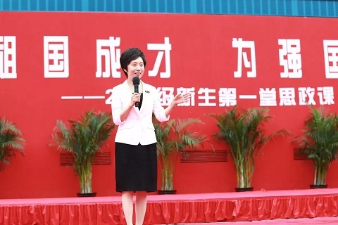 9月6日下午,3300余名复旦新生如约来到正大体育馆,聆听开学第一课。这堂课的主讲人是复旦大学党委书记焦扬,她带来的题目是《为祖国成才 为强国奋斗》,今年也是她第三年为新生上思政课。