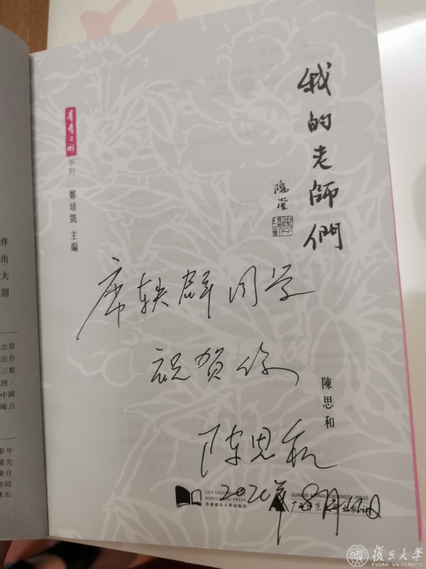 2020年复旦的0002号录取通知书,复旦大学副校长徐雷送给了复旦附中的席轶群同学。同时送上的,还有复旦中文系教授陈尚君编选的《花舞大唐气象新》、陈思和教授著作并签名的《耳顺六记》、《我的老师们》。这两位教授都曾经担任过中文系系主任。