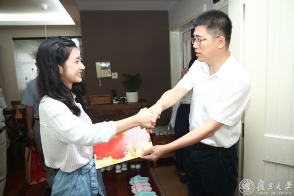 11日下午,复旦大学副校长徐雷赶赴杨浦、徐汇、虹口、闵行,为四位新生送上录取通知书,并与同学座谈。