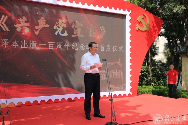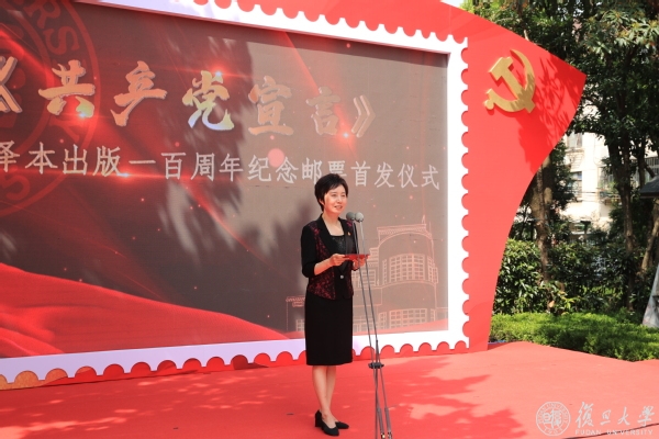 上海市人民政府副秘书长虞丽娟,复旦大学党委书记焦扬,上海市委宣传部原副部长、解放日报报业集团原党委书记、社长、1964届新闻系校友贾树枚,上海市邮政管理局党组书记、局长冯力虎,中国邮政集团有限公司上海市分公司党委书记、总经理王俭等出席首发仪式。虞丽娟与焦扬共同为《共产党宣言》中译本出版一百周年纪念邮票揭幕。