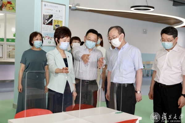 焦扬、倪耀明还特别查看了教室、食堂等开学防疫准备工作情况,关心师生健康安全,对开学后配有隔板餐桌的食堂防疫,表示赞赏。
